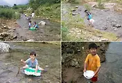 밭을 한바퀴 휘 돌아본 후에 부산 식구들과 아버지께서는 개울로 다슬기를 잡으러 가셨다.
